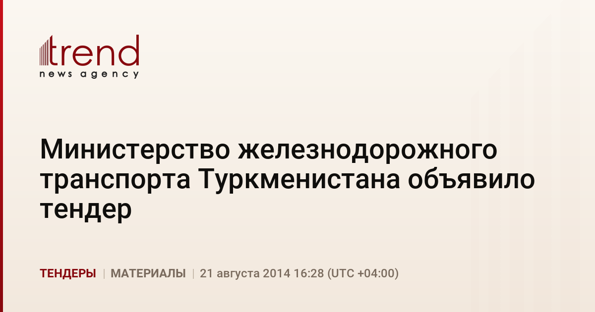 АШХАБАД /Trend/ - Министерство железнодорожного транспорта Туркменистана объявляет тендер.