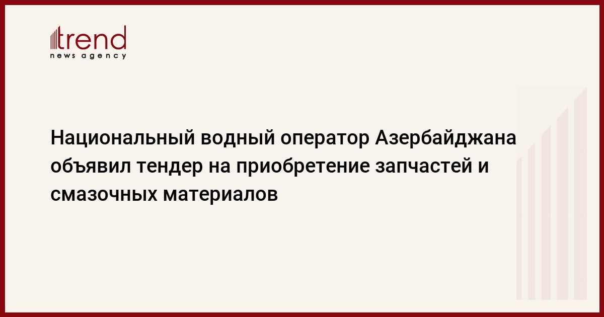 БАКУ /Trend/ - “Azersu” (национальный водный оператор Азербайджана) объявил тендер на приобретение запасных частей и смазочных материалов для транспортных средств и специального оборудования на балансе ОАО.