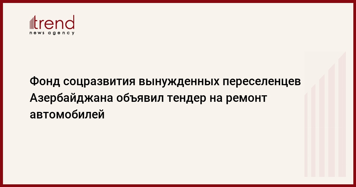 БАКУ /Trend/ - Фонд социального развития вынужденных переселенцев Азербайджана объявил тендер на ремонт автомобилей.