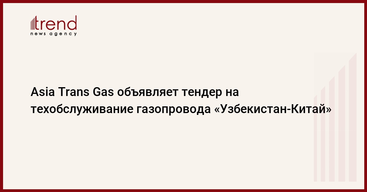 БАКУ /Trend/ - Asia Trans Gas объявляет тендер на предоставление услуг по инженерно-технической поддержке и проверке системы замера на эксплуатируемых станциях проекта «Газопровод Узбекистан-Китай»