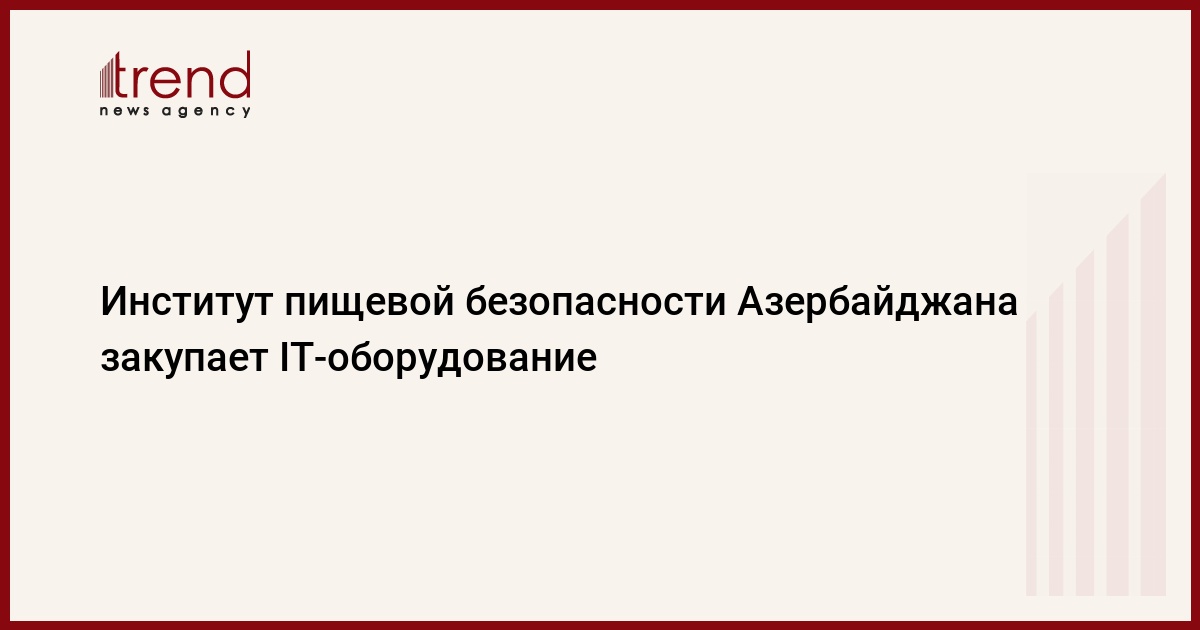 БАКУ /Trend/ - Институт пищевой безопасности Азербайджана объявляет тендер на закупку IT-оборудования.