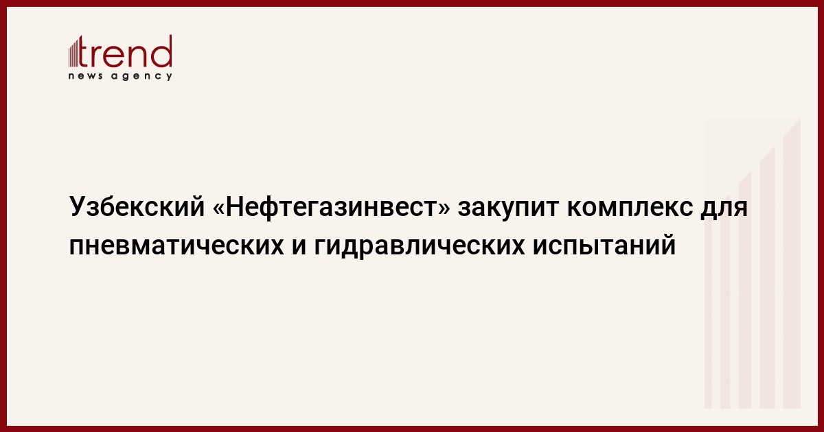 БАКУ /Trend/ - Узбекское ООО «Нефтегазинвест» при АО «Узбекнефтегаз» объявляет тендер №ОТ/257-2018 на поставку комплекса для пневматических и гидравлических испытаний и настройки предохранительных клапанов.