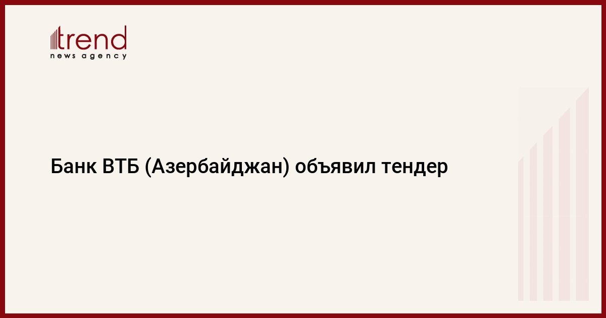 Как передает Trend со ссылкой на сообщение банка, с тендерной документацией можно ознакомиться в офисе банка по адресу: пр. Хатаи 38, Меценат Плаза, ОАО Банк ВТБ (Азербайджан), АZ 1008.