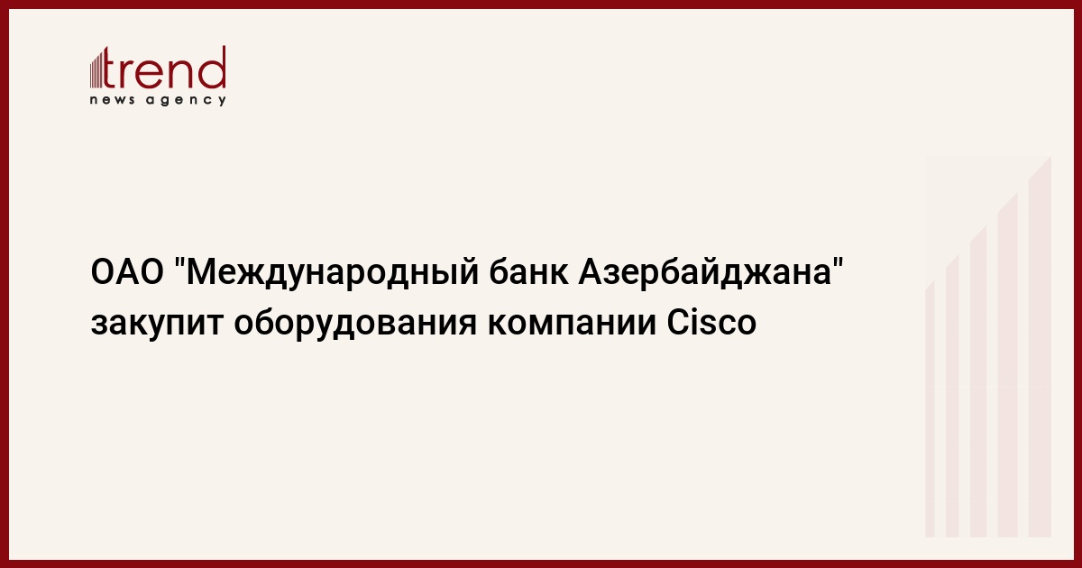 БАКУ/Trend/ - ОАО "Международный банк Азербайджана" объявляет тендер на закупку оборудования компании Cisco и услуг технической поддержки системного программного обеспечения