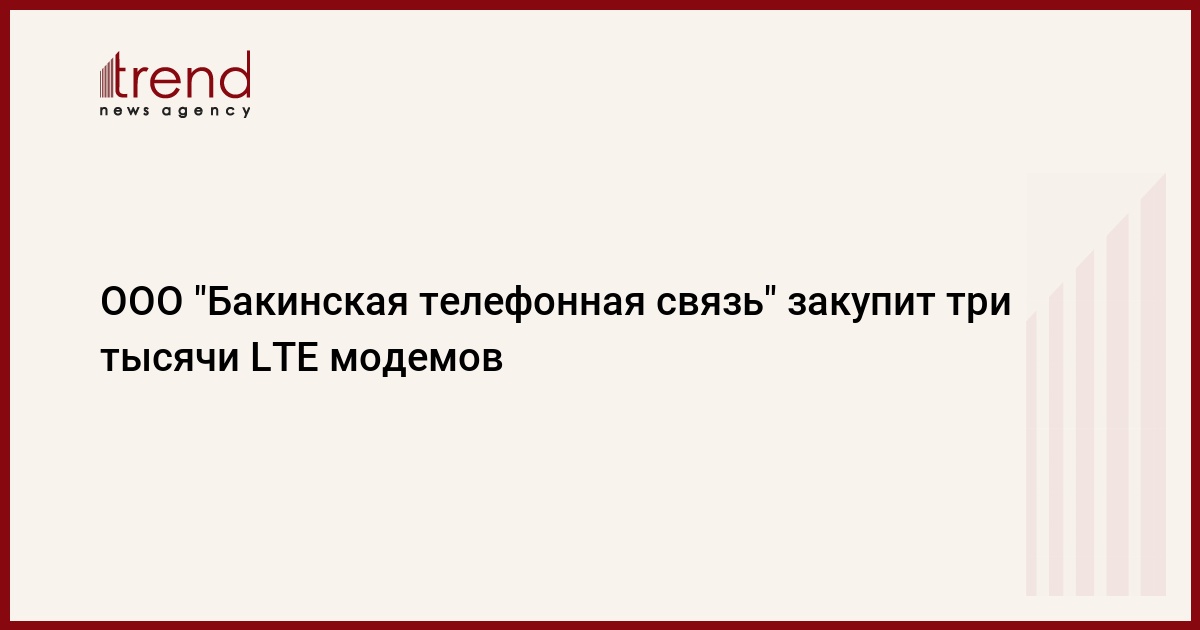 БАКУ/Trend/ - ООО "Бакинская телефонная связь" (BTRİB) объявляет тендер на закупку трех тысяч LTE модемов.