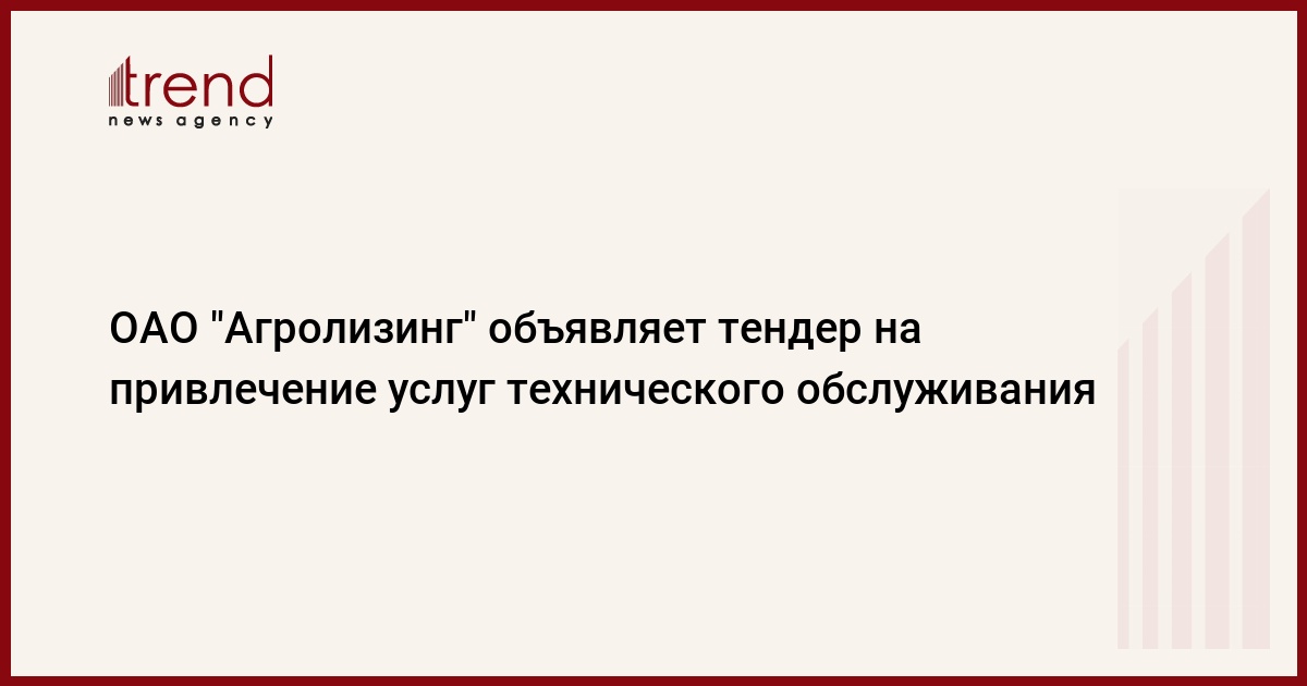 БАКУ /Trend/ - Открытое акционерное общество "Агролизинг" объявляет тендер на привлечение услуг технического обслуживания, ремонта и восстановления электроснабжения (высокого и низкого напряжения).