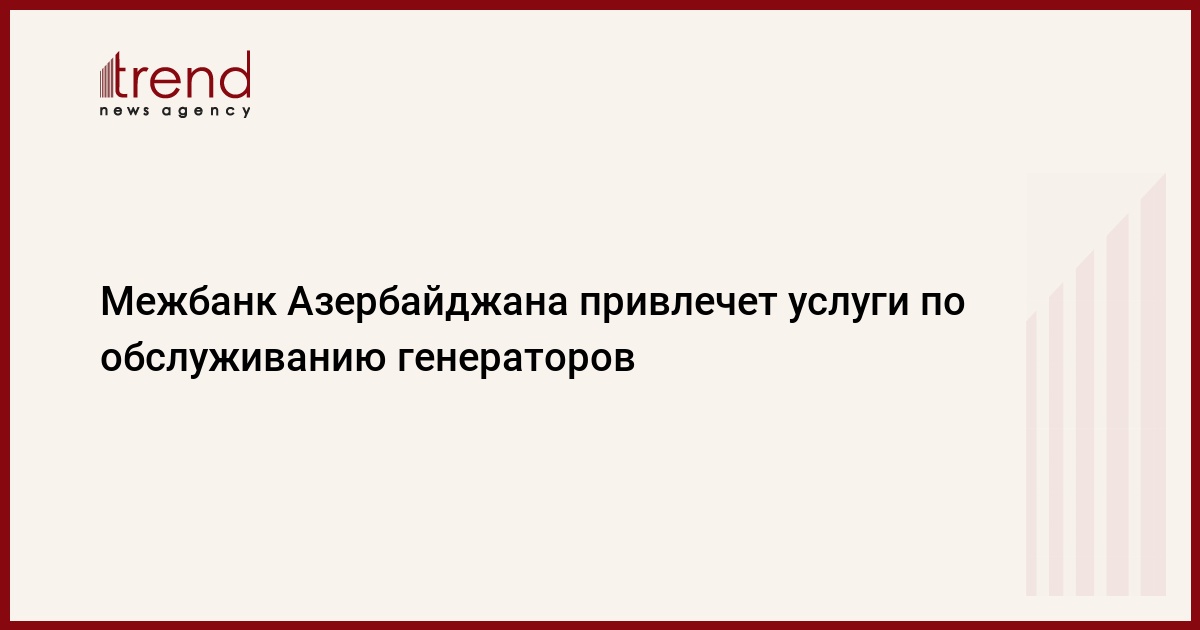 БАКУ /Trend/ - Международный банк Азербайджана объявляет тендер на привлечение работ по техническому обслуживанию и ремонту генераторов, эксплуатируемых в его структурных подразделениях.