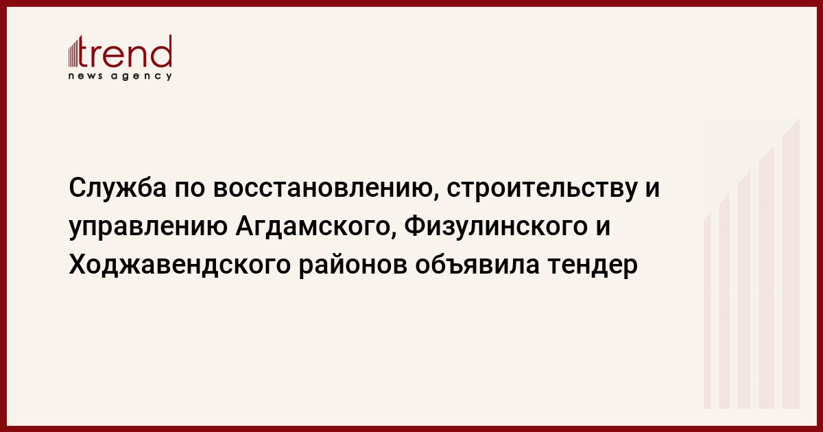 Служба по восстановлению, строительству и управлению Агдамского, Физулинского и Ходжавендского районов объявила тендер