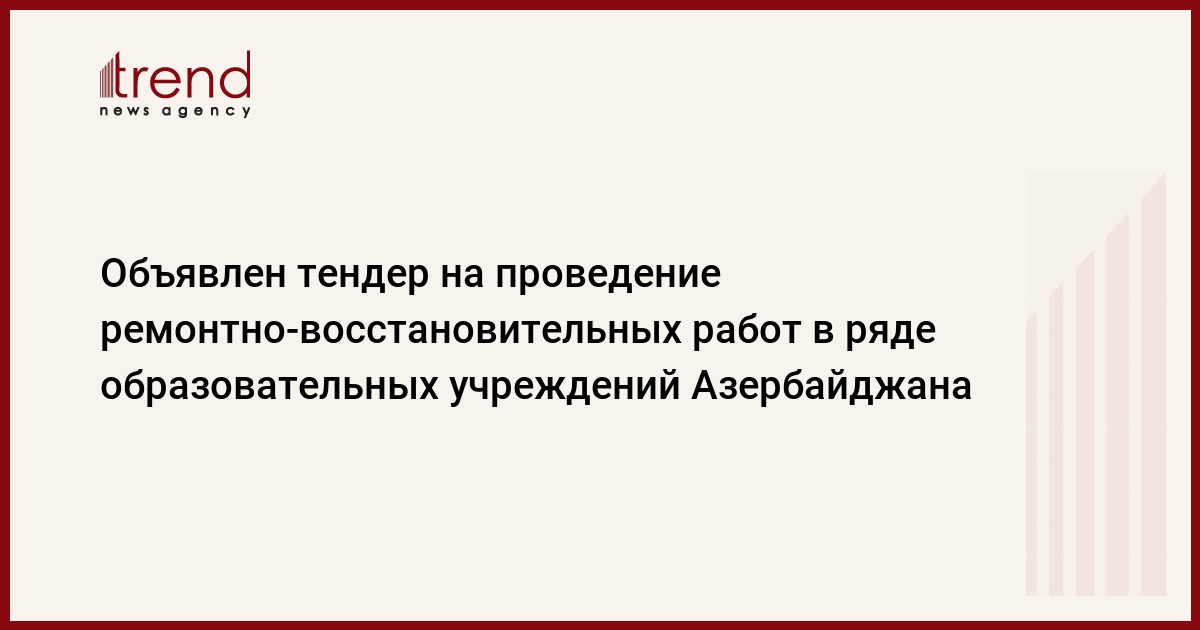 Объявлен тендер на проведение ремонтно-восстановительных работ в ряде образовательных учреждений Азербайджана