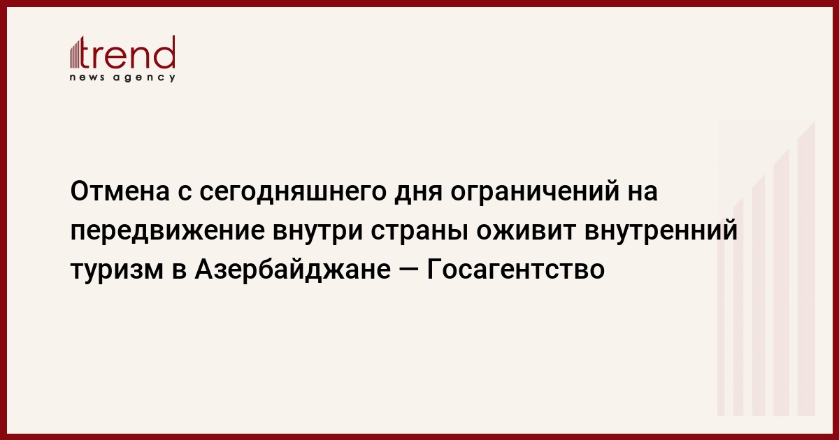 БАКУ /Trend/ - Отмена с сегодняшнего дня ограничений на передвижение внутри страны привнесет оживление в туристическую отрасль Азербайджана