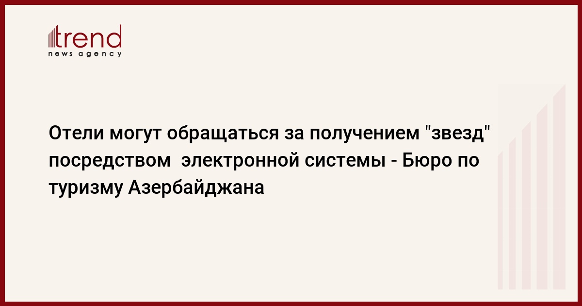БАКУ /Trend/ - Отели в Азербайджане могут обращаться за получением "звездной" категории посредством электронной системы. Данный процесс осуществляется аудиторами.