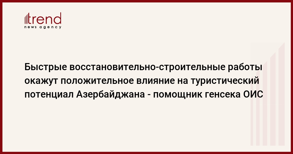 БАКУ /Trend/ - Ускоренные восстановительно-строительные работы, проводимые на освобожденных территориях, окажут положительное влияние на экономику и туристический потенциал Азербайджана.