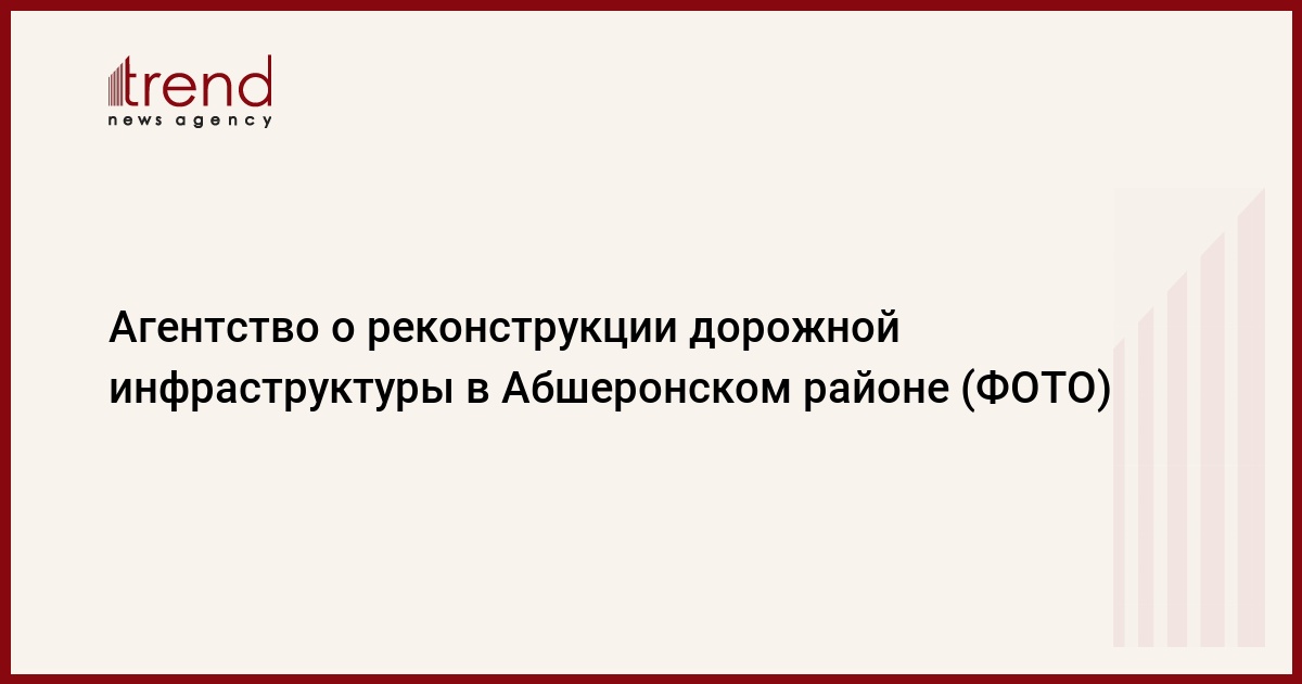 БАКУ/Trend/ - Согласно Распоряжению Президента Азербайджанской Республики «О дополнительных мерах, связанных с капитальным ремонтом автомобильных дорог» на территории Абшеронского района, Государственным агентством автомобильных дорог Азербайджана стартовало выполнение комплексных мероприятий на территории данного района, сообщил в четверг Trend пресс-секретарь агентства Анар Наджафли.