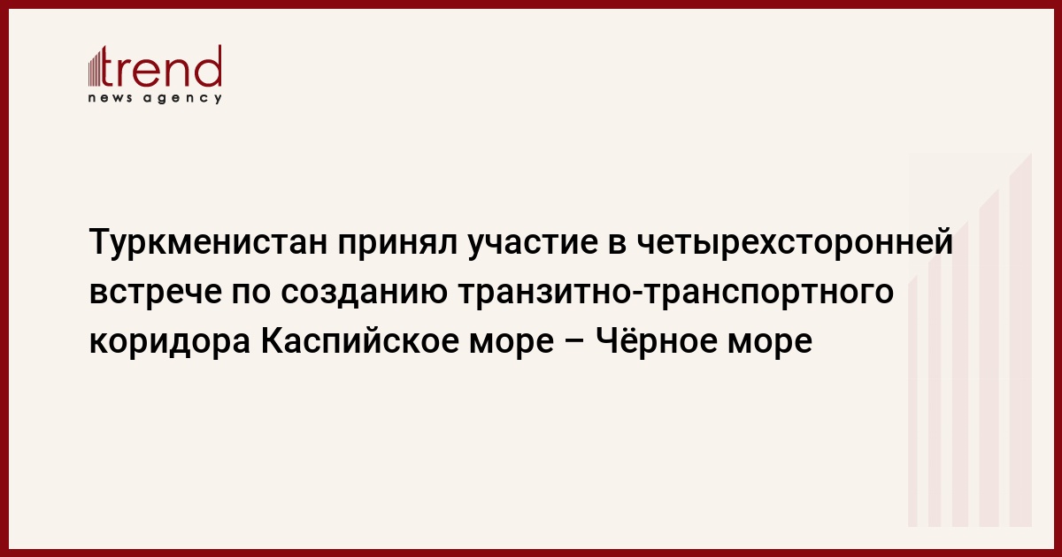 БАКУ /Trend/ - Туркменистан принял участие в четырехсторонней встрече по созданию и реализации проекта межправительственного Соглашения международного транзитно-транспортного коридора Каспийское море – Чёрное море.