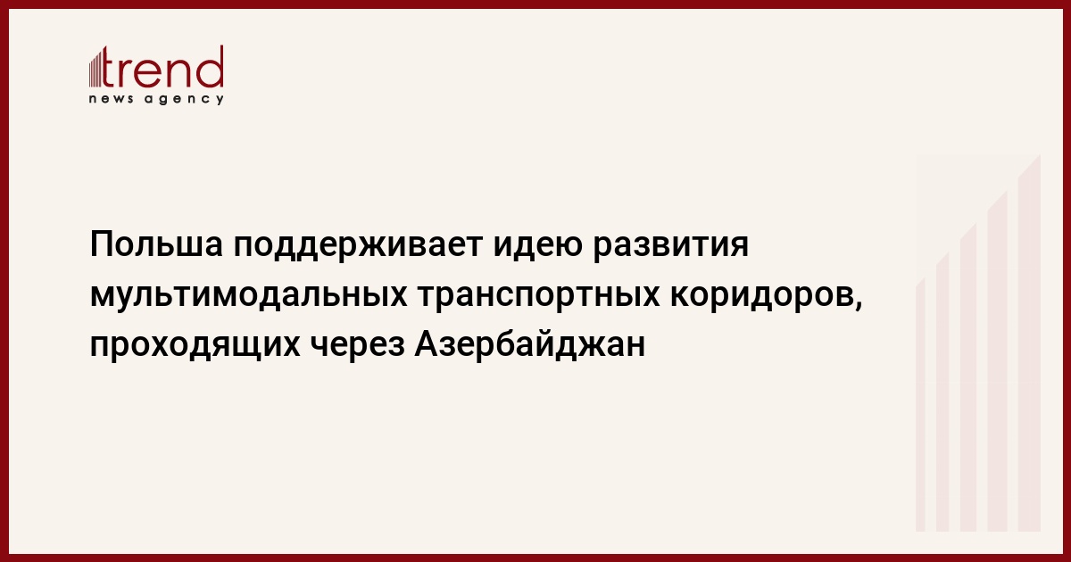 БАКУ /Trend/ - Польша поддерживает идею развития мультимодальных транспортных коридоров, соединяющих Европу и Азию, в том числе проходящих через Южный Кавказ, сказали Trend в министерстве иностранных дел Польши.