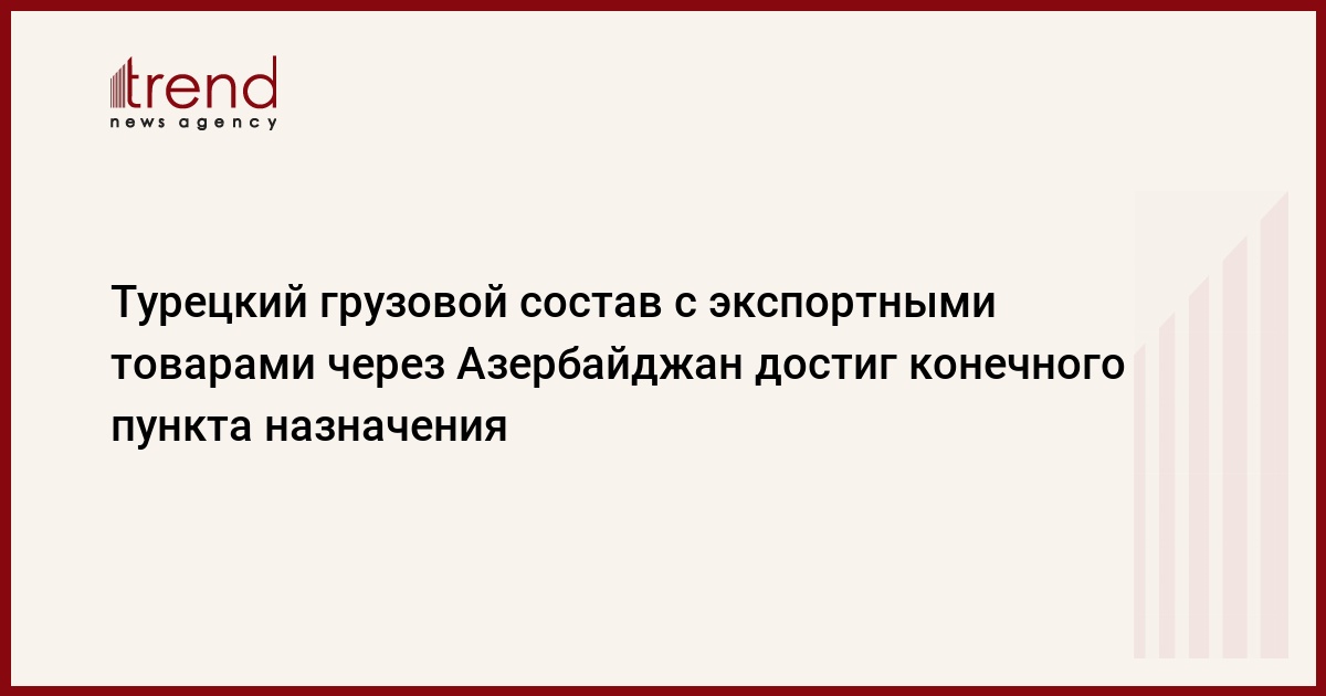 БАКУ /Trend/ - Первый грузовой состав с экспортными товарами из Турции прибыл в город Сиань (Китай).