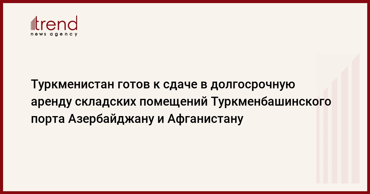 БАКУ /Trend/ - Туркменистан готов рассмотреть конкретные формы партнёрства с Афганистаном и Азербайджаном, в том числе вопросы сдачи складских помещений Туркменбашинского международного морского порта в долгосрочную аренду, терминалов для хранения нефтепродуктов, выделения специальных мест для совершения разгрузочно-погрузочных операций с грузами.