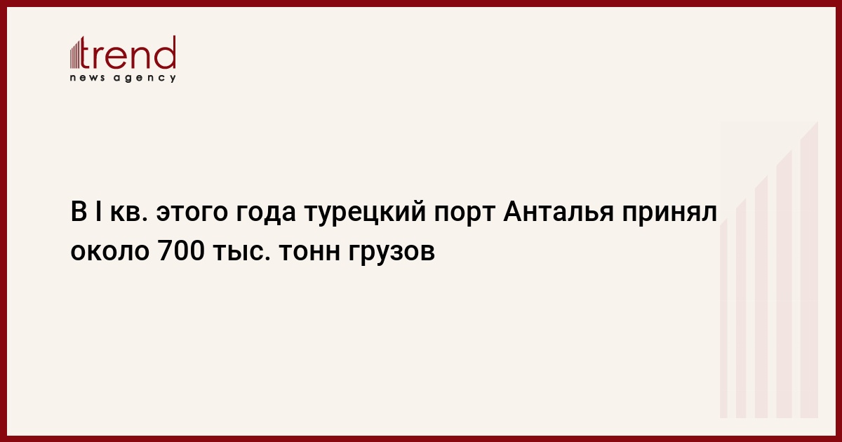 БАКУ /Trend/ - В январе – марте 2021 года объем перевалки грузов в турецком порту Анталья составил 698,836 тысячи тонн.