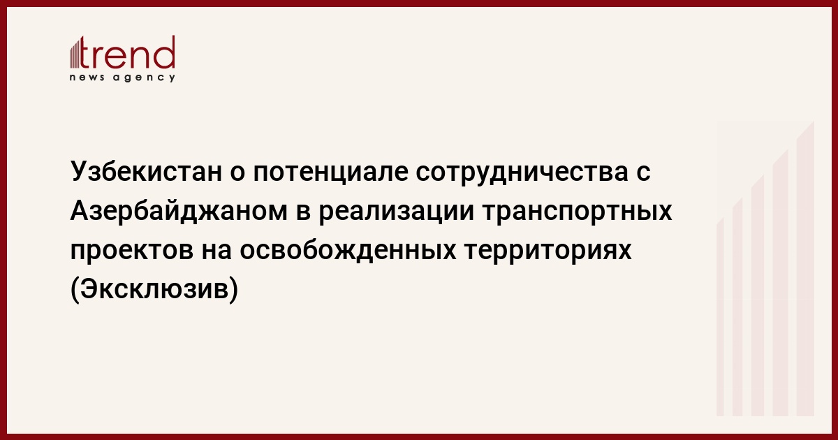 БАКУ /Trend/ - Узбекистан готов рассмотреть сотрудничество с Азербайджаном в реализации транспортных проектов на освобожденных территориях страны.