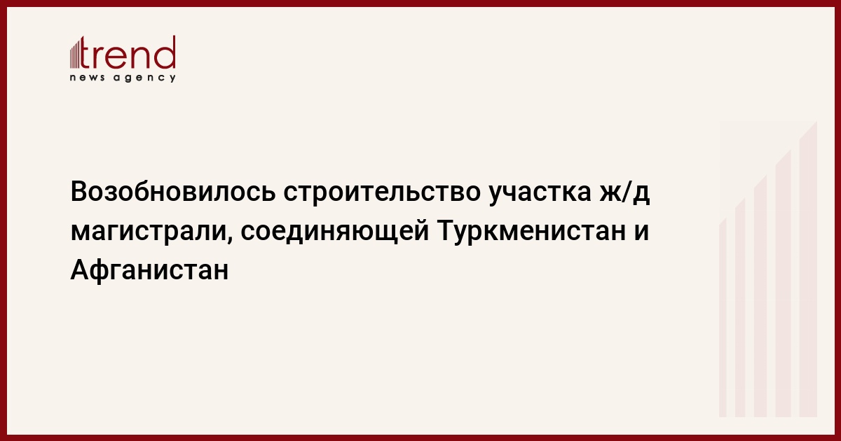 БАКУ /Trend/ - 30 августа 2021 года возобновились строительные работы на участке железнодорожной линии Акина – Андхой, которая является частью ж/д магистрали, соединяющей Туркменистан и Афганистан, передает Trend со ссылкой на Министерство иностранных дел Туркменистана.