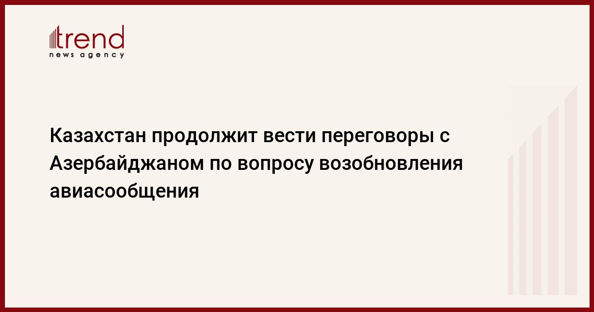 БАКУ /Trend/ - Министерство индустрии и инфраструктурного развития Казахстана продолжит вести переговоры по вопросу возобновления авиасообщения с Азербайджаном.