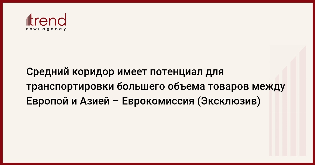 БАКУ/Trend/ - Средний коридор имеет потенциал для транспортировки большего объема товаров между Европой и Азией, сказала в понедельник Trend официальный представитель Еврокомиссии Мириам Гарсия.