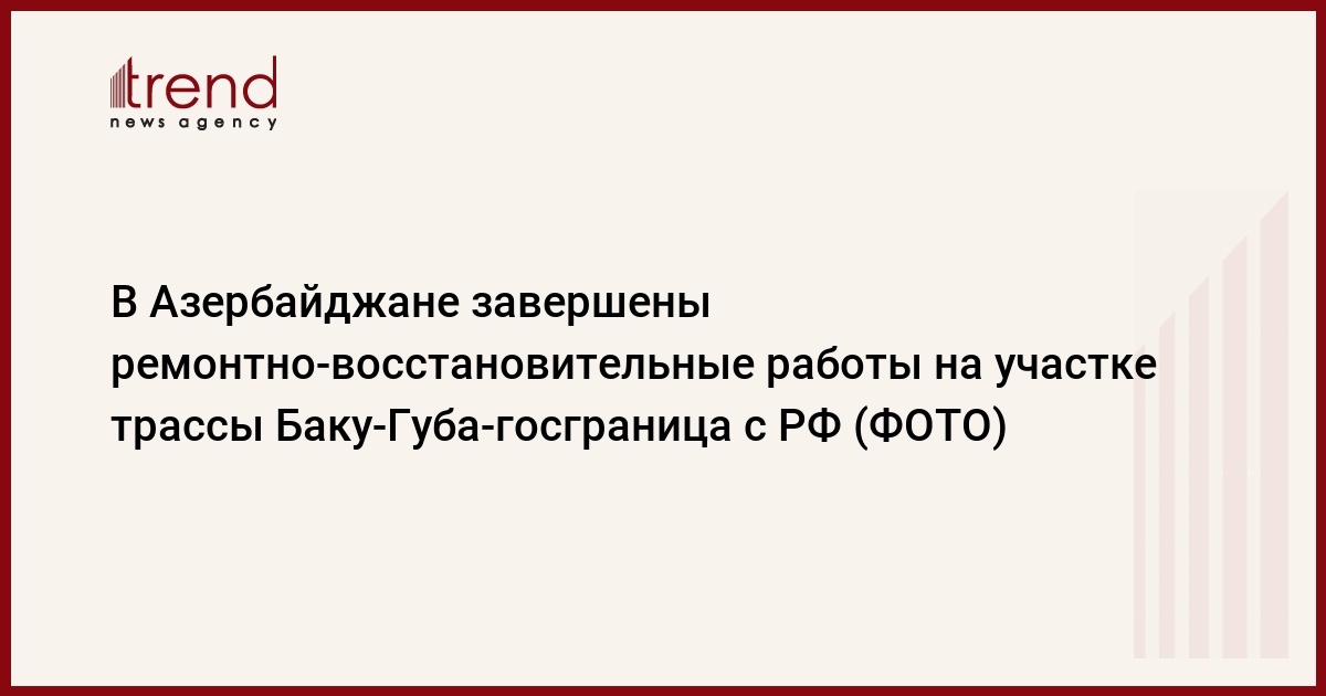 БАКУ /Trend/ - Завершены ремонтно-восстановительные работы на деформированном 5-километровом участке автомобильной дороги М-1 Баку-Губа-госграница с Российской Федерацией в направлении Баку-Губа, сообщает во вторник Trend.