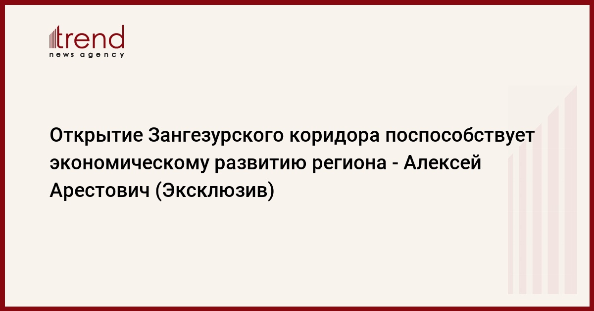БАКУ /Trend/ - Открытие Зангезурского коридора поспособствует экономическому развитию региона, предоставляя дополнительные источники доходов и расширяя возможности развития для всех государств, желающих участвовать в данном проекте.