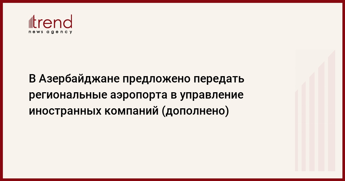 БАКУ /Trend/ - Предложено передать региональные аэропорта в управление иностранных компаний.