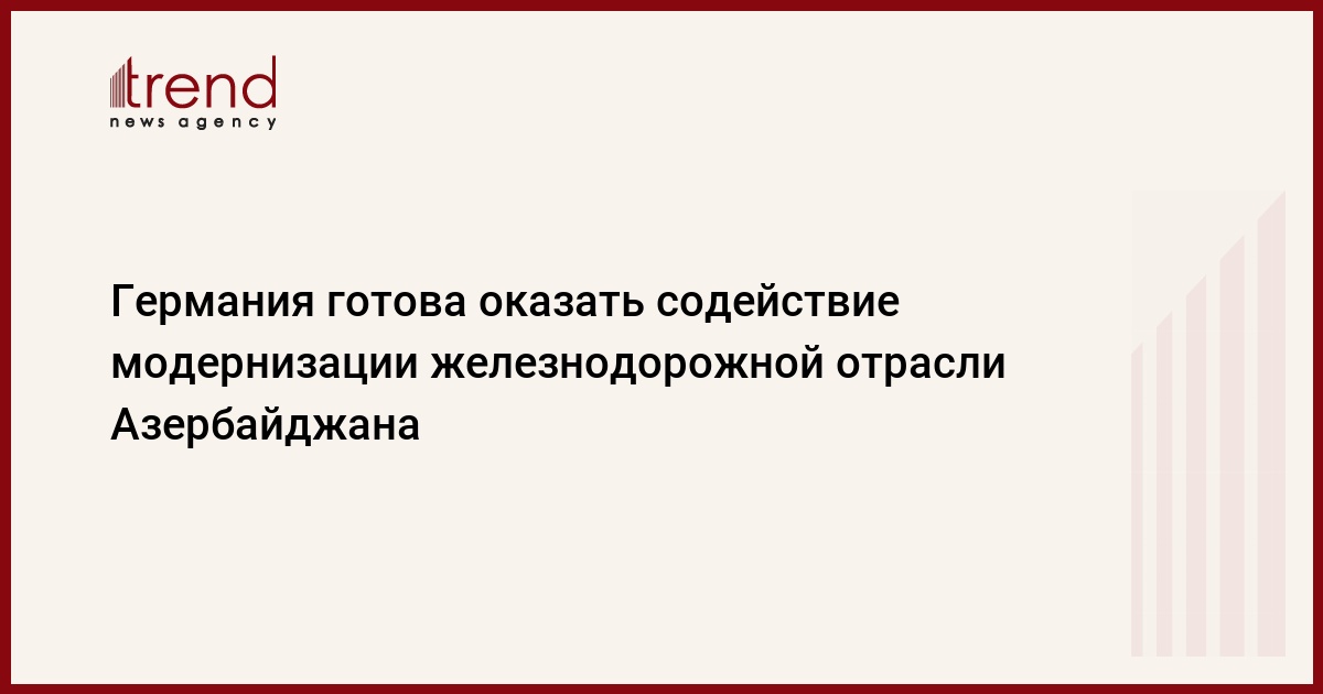 Германская сторона выражает удовлетворение тем, что правительство Азербайджана поставило новые цели по расширению и модернизации железнодорожного транспорта и планирует в значительной степени реализовать их к 2030 году.