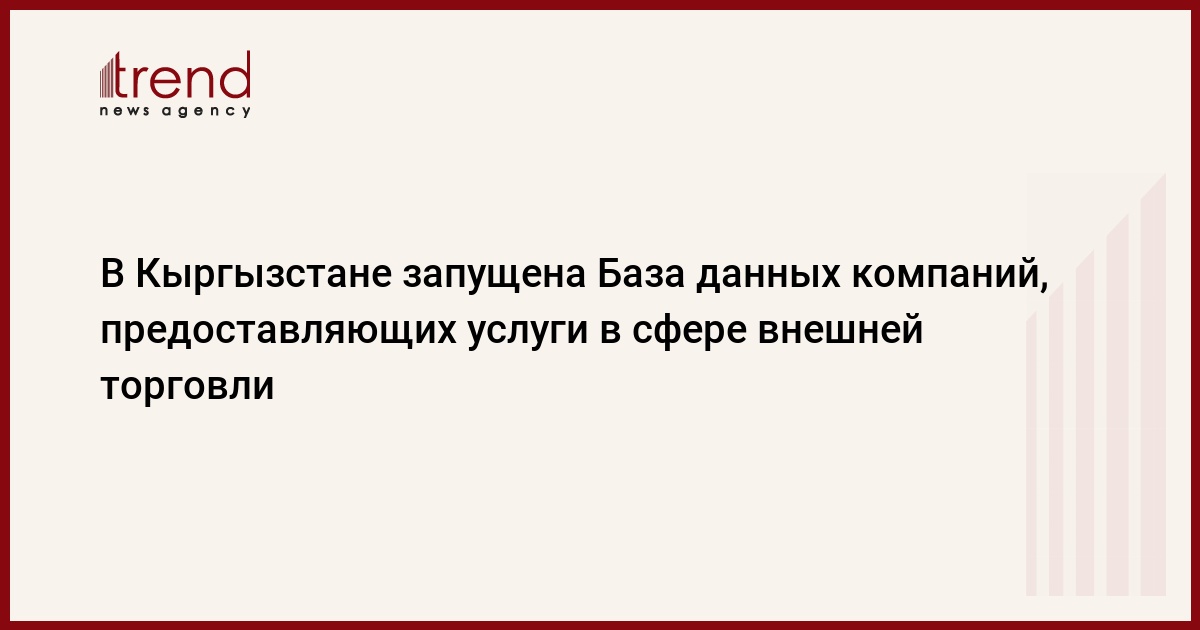 Сегодня, 12 апреля, в Торгово-промышленной палате Кыргызской Республики прошла церемония запуска первого портала – Базы данных компаний, предоставляющих услуги в сфере внешней торговли, передает Trend со ссылкой на