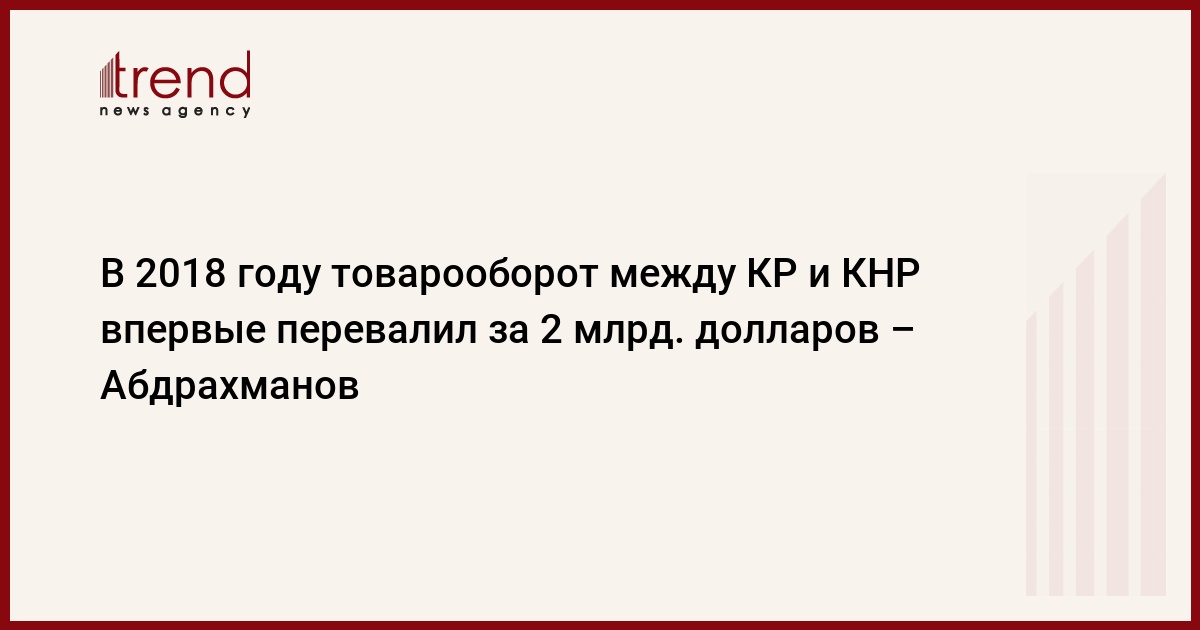 По итогам последних трех лет Китай занимает первое место в товарообороте Кыргызстана со странами. Об этом на форуме «Экспертно-аналитический диалог Кыргызстан-Китай» заявил замминистра иностранных дел Кыргызстана Нурлан Абдрахманов, передает Trend со ссылкой на Агентство Kabar.kg
