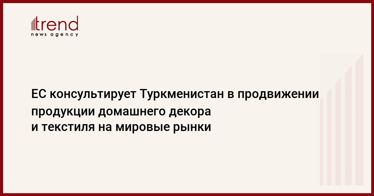 АШХАБАД /Trend/ - Европейский Союз (ЕС) организовал в Ашхабаде для местных предпринимателей семинар, посвященный экспорту продукции домашнего декора и текстиля в Европу, сообщает Trend со ссылкой на Союз промышленников и предпринимателей Туркменистана (СППТ).