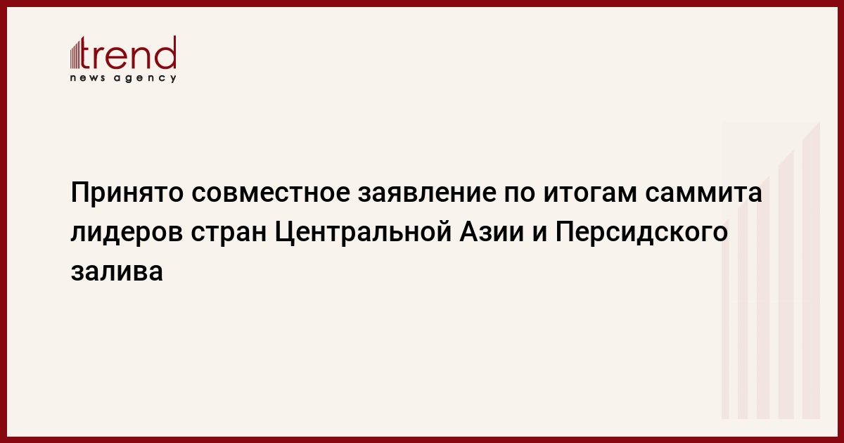 БАКУ /Trend/ - Лидеры стран Центральной Азии и Персидского залива по итогам саммита "Центральная Азия – Совет сотрудничества арабских государств Персидского залива", который прошел 19 июля в городе Джидде, Саудовская Аравия, приняли совместное заявление.