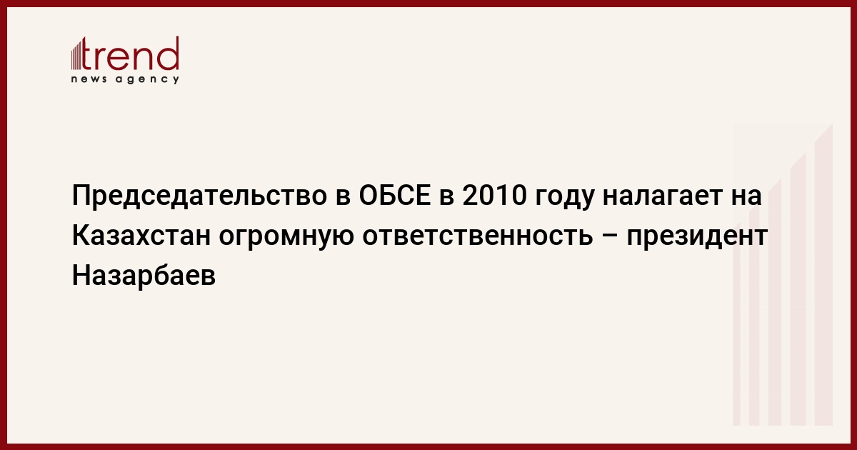 Председательство в ОБСЕ в 2010 году налагает на Казахстан огромную ответственность – президент Назарбаев