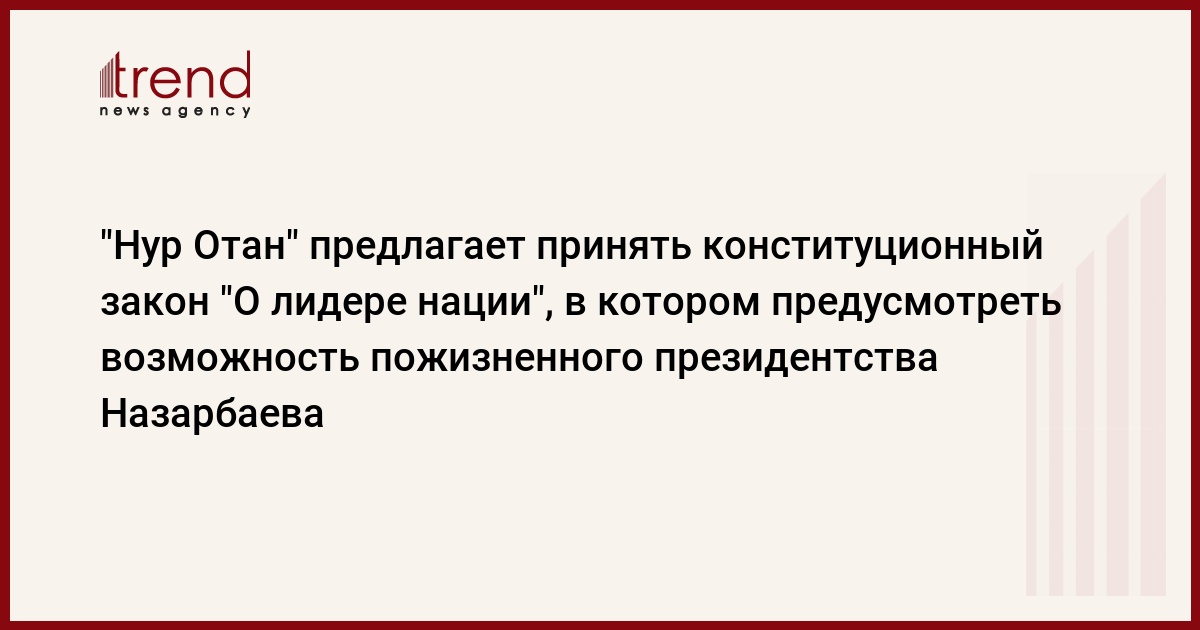"Мы предлагаем обсудить с привлечением широкого круга экспертов возможность принятия Конституционного Закона "О лидере нации", в котором следует обозначить все моменты, другие параметры касательно статуса главы государства. В том числе там можно прописать и нормы о пожизненности его президентства", - сказал он на брифинге в понедельник.