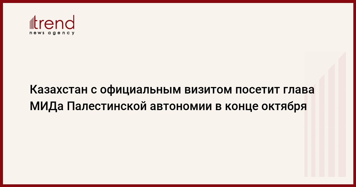 Казахстан с официальным визитом посетит глава министерства иностранных дел (МИД) Палестинской автономии 28-29 октября, сообщил пресс-секретарь МИД РК Ильяс Омаров, пишет КазТАГ.