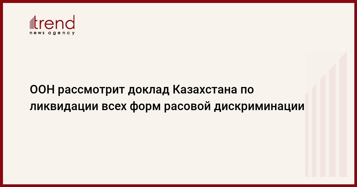 Казахстан представит ООН 26 февраля и 1 марта объединенный четвертый и пятый периодический доклад о принятых законодательных, судебных, административных или других мерах по ликвидации расовой дискриминации, говорится в официальном сообщении ООН.