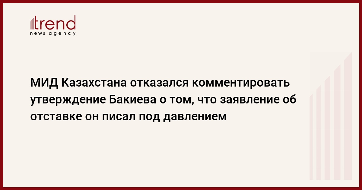 Министерство иностранных дел РК (МИД) отказалось комментировать сделанное экс-главой Кыргызстана Курманбеком Бакиевым заявление о том, что он написал свой отказ от поста президента под психологическим давлением и по рекомендации президента Казахстана Нурсултана Назарбаева и премьер-министра Владимира Путина, пишет КазТАГ.