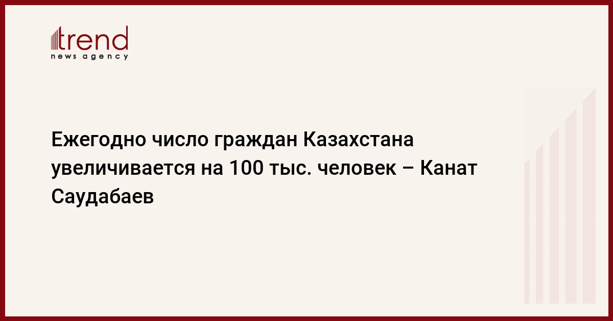 Ежегодно число граждан Казахстана увеличивается примерно на 100 тысяч человек, об этом сегодня сказал государственный секретарь - министр иностранных дел РК Канат Саудабаев, открывая в АК-Орде заседание комиссии по вопросам гражданства при президенте РК.