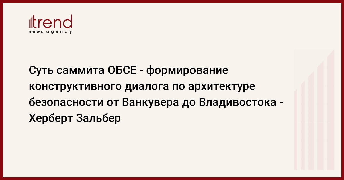Создание фундамента для конструктивного диалога по архитектуре безопасности от Ванкувера до Владивостока в интересах всего мирового сообщества является главной сутью саммита. Об этом сказал директор центра ОБСЕ по предотвращению конфликтов Херберт Зальбер сегодня на брифинге в пресс-центре "Шабыт", пишет Казинформ.