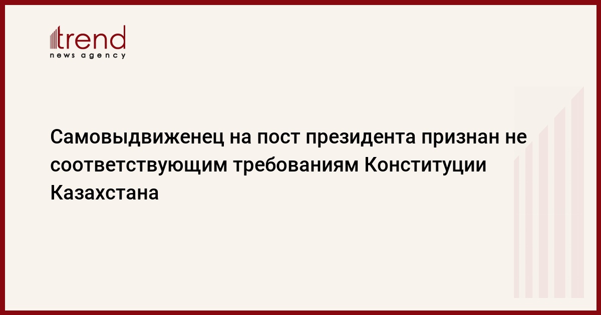 Претендент на пост президента Казахстана Толыбай Баймурзин признан не соответствующим требованиям Конституции и конституционному закону "О выборах в РК", сообщил секретарь центральной избирательной комиссии Бахыт Мельдешев, пишет КазТАГ.