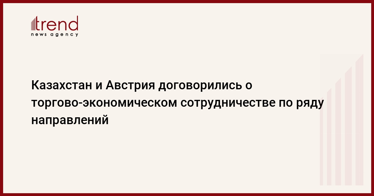 В Министерстве иностранных дел Казахстана подписан протокол 4-го заседания межправительственной комиссии по торгово-экономическому сотрудничеству между Казахстаном и Австрией, сообщает Казинформ.