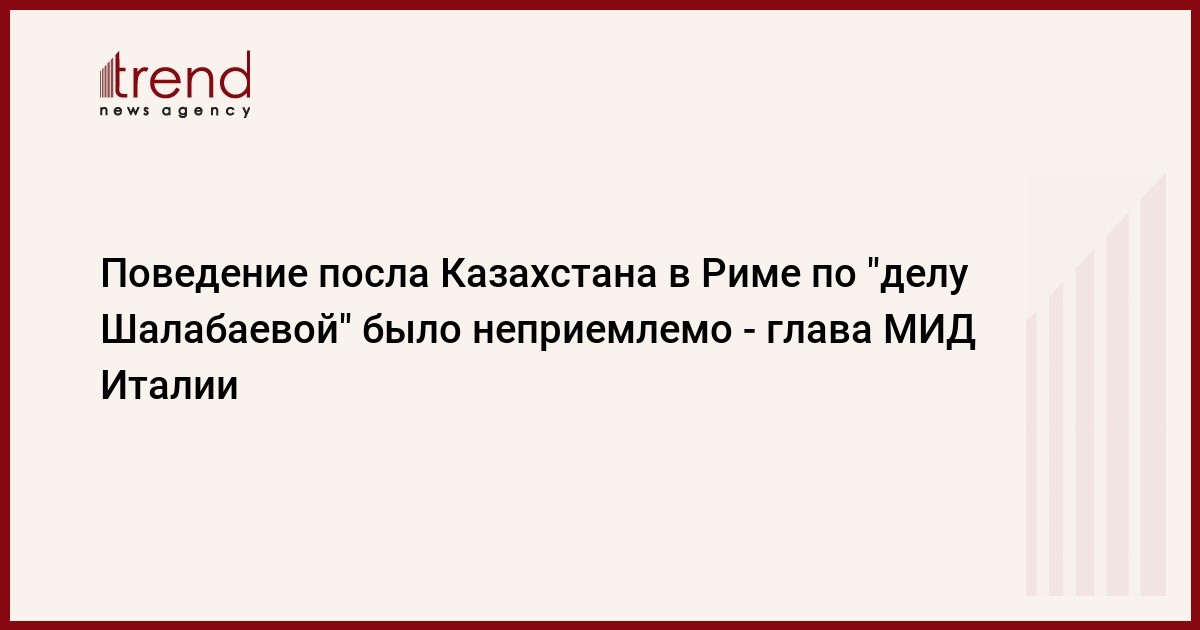 "Астана сообщила нам, что хочет хороших отношений с Италией. Я полагаю очевидным, что после этого эпизода (с депортацией Шалабаевой) качество отношений будет зависеть от готовности Астаны сотрудничать и гарантий того, что будут соблюдены права человека и предоставлена свобода передвижения Алме Шалабаевой и ее дочери", - сказала министр, её цитирует агентство Adnkronos.
