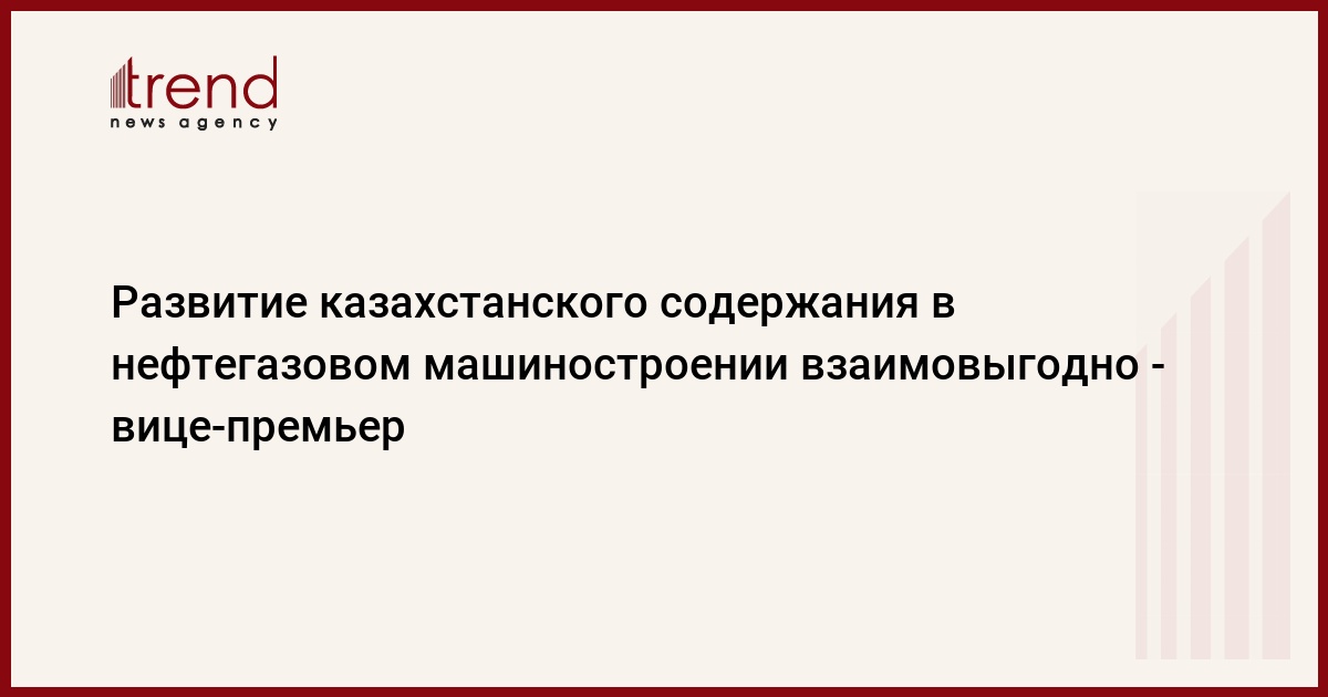 Развитие казахстанского содержания в нефтегазовом машиностроении является взаимовыгодной мерой, считает заместитель премьер-министра, министр индустрии и новых технологий Казахстана Асет Исекешев.