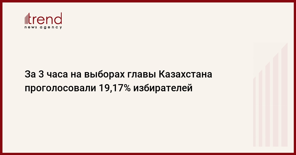 Явка за первые три часа голосования на досрочных выборах президента Казахстана составила 19,17%, заявила член Центральной избирательной комиссии Ляззат Сулеймен, сообщает РИА Новости.