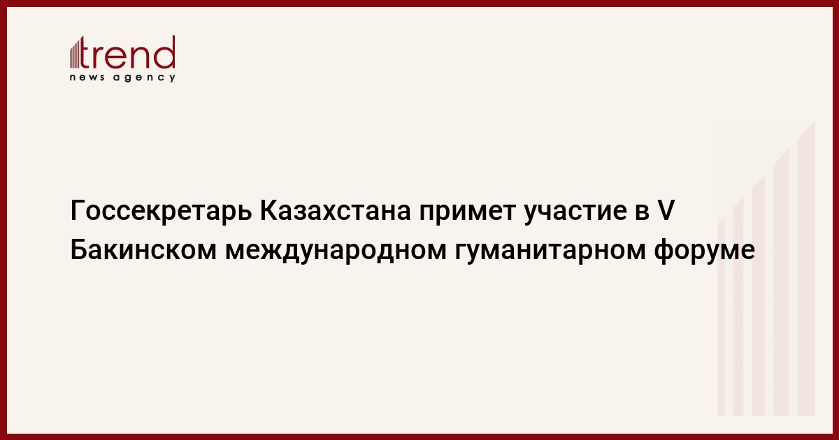 БАКУ /Trend/ - Государственный секретарь Казахстана Гульшара Абдыкаликова посетит Баку для участия в V Бакинском международном гуманитарном форуме, который пройдет 29-30 сентября, сообщает в среду посольство Казахстана в Азербайджане.
