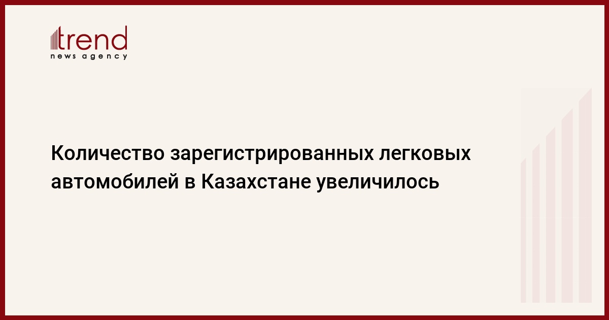 БАКУ /Trend/ - Количество зарегистрированных легковых автомобилей в Казахстане в январе-мае текущего года составило 332 908, что на 67,9 процента больше, чем за аналогичный период прошлого года. Об этом сообщает в среду Комитет по статистике министерства национальной экономики Казахстана.