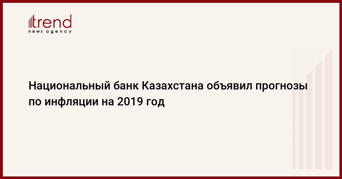 БАКУ /Trend/ - Национальный банк Казахстана (НБК) прогнозирует, что годовая инфляция в Казахстане в 2019 году будет находиться в целевом коридоре 4−6 процента, находясь около его верхней границы, передает Trend со ссылкой на Kapital.kz.