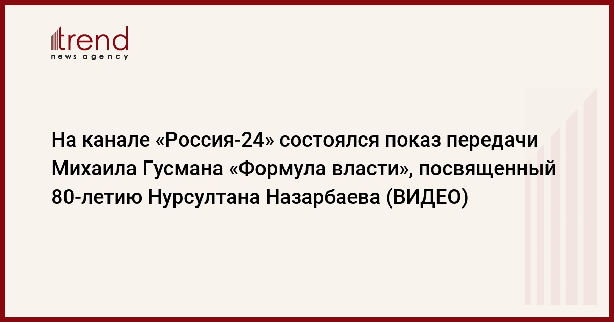 БАКУ/Trend/ - Очередной выпуск передачи «Формула власти» первого заместителя генерального директора ТАСС Михаила Гусмана, который 6 июля транслировался на российском телеканале «Россия-24», был посвящен 80-летию первого Президента Казахстана Нурсултана Назарбаева.
